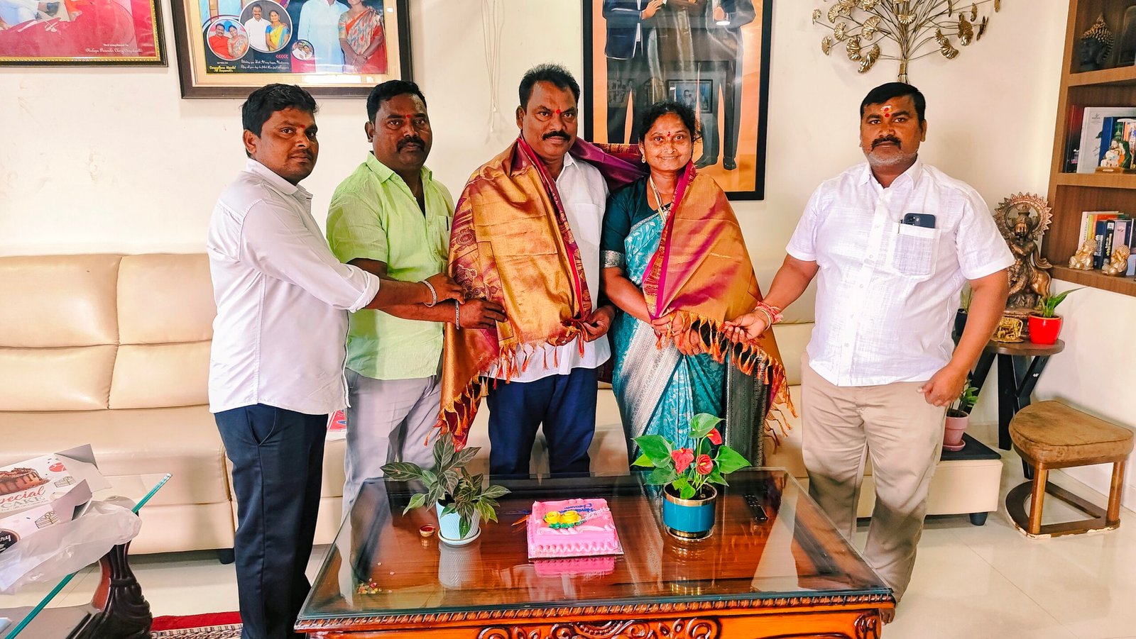 మాజీ ఎమ్మెల్యే సుంకే రవి శంకర్ – దీవెన దంపతుల పెళ్లి రోజు సందర్భంగా పార్టీ కార్యకర్తలు, సర్పంచ్ లు పండుగలా జరుపుకున్నారు. దంపతులకు శాలువా కప్పి బోకెలతో సత్కరించి, కేక్ కట్ చేసి శుభాకాంక్షలు తెలియజేశారు. నాయకులు, అభిమానులు పెద్ద సంఖ్యలో పాల్గొని ఆనందోత్సాహాల మధ్య వేడుకలను నిర్వహించారు.